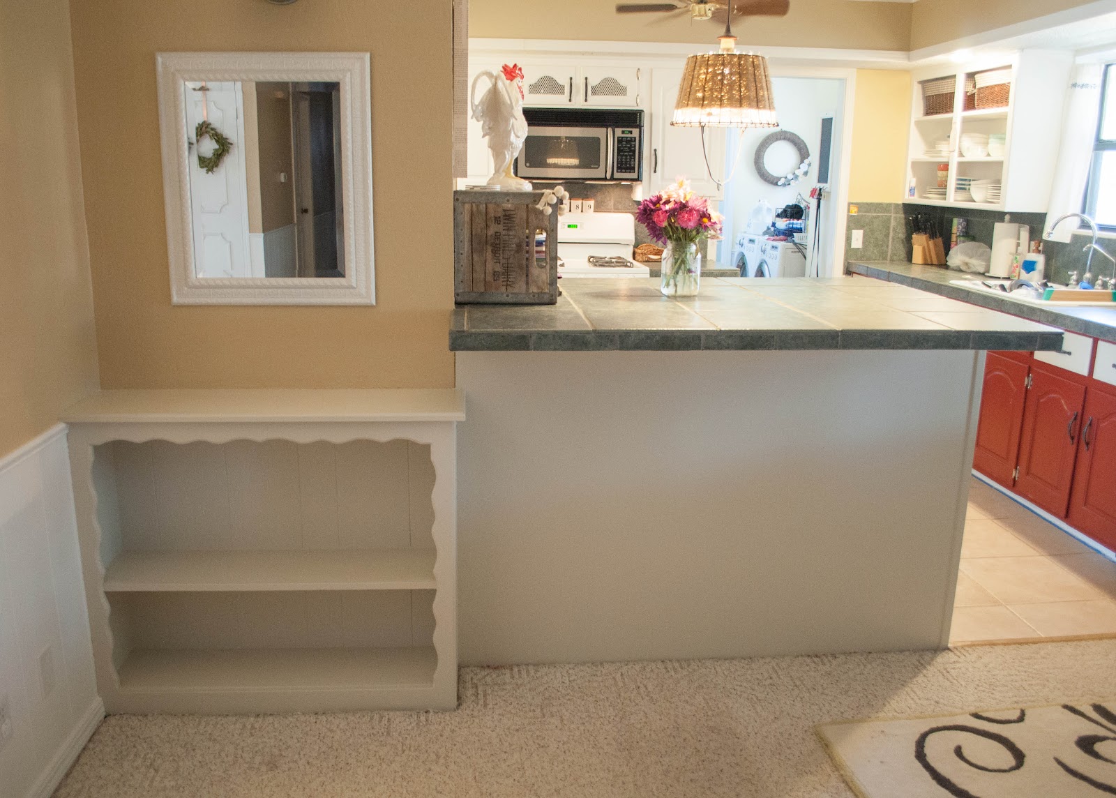 This past weekend, I tackled the "island", (we call it that, although, technically, it's not), and attached bookshelf.